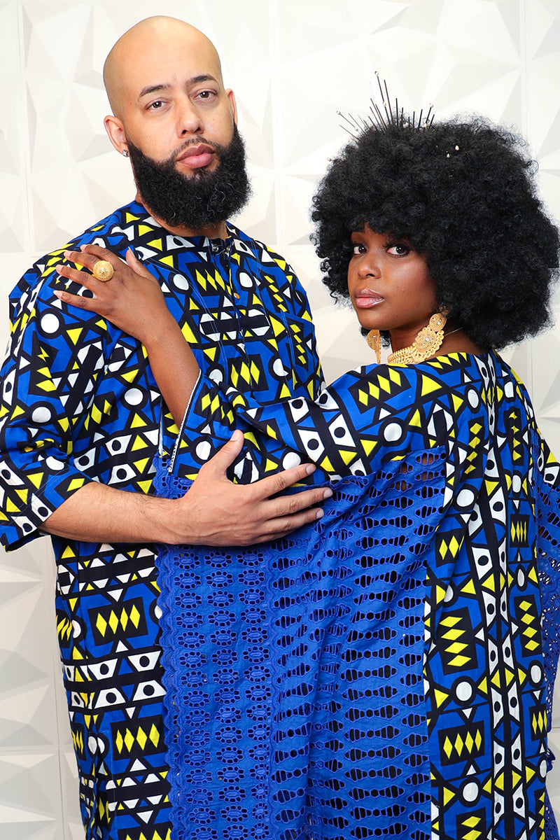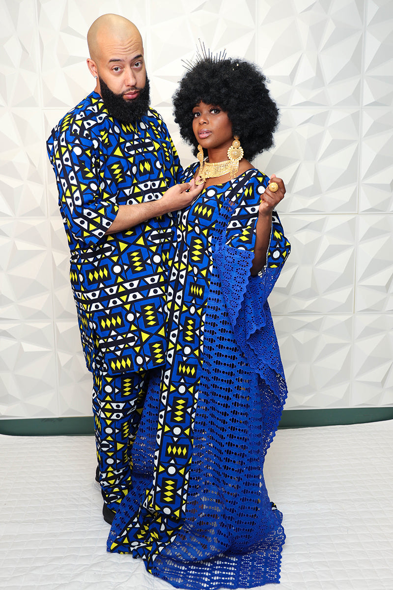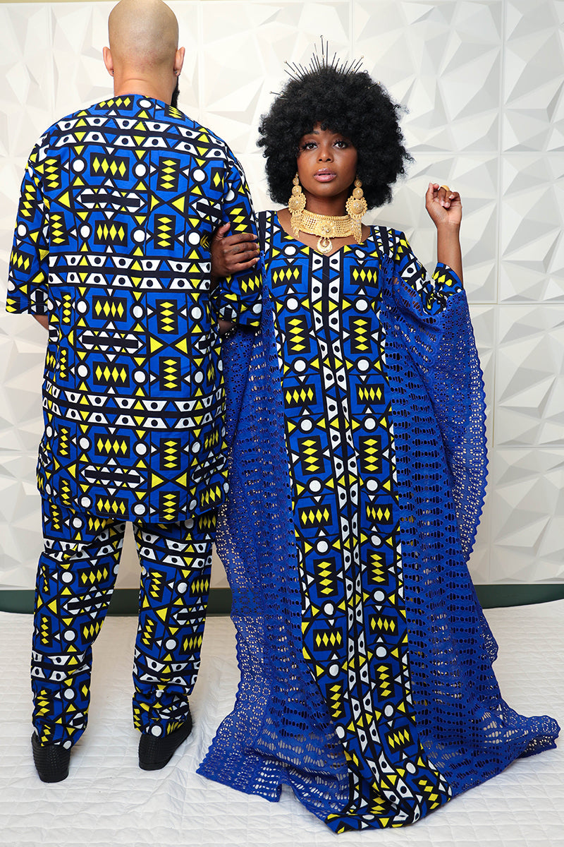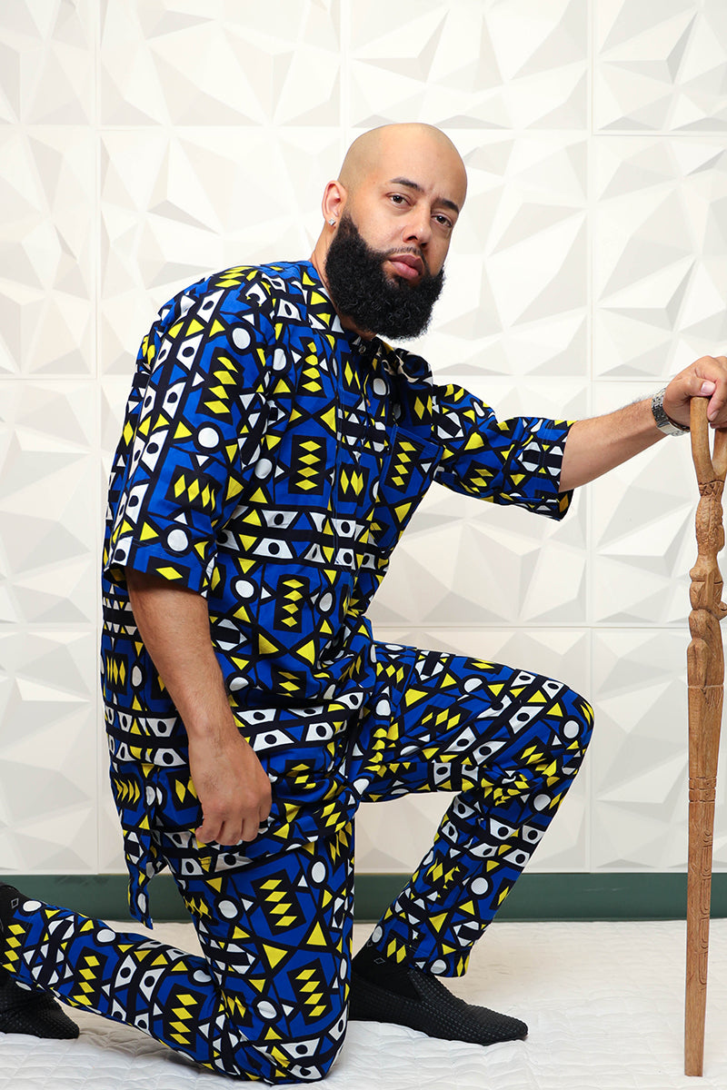 Specially made for a king, rock the Blue Nasir African Print Pant Set. Pair the elegant set with our Knitted Nasia Kaftan Dress, and accessories to complete your regal look. Be prepared to steal the spotlight in this unique African inspired style!